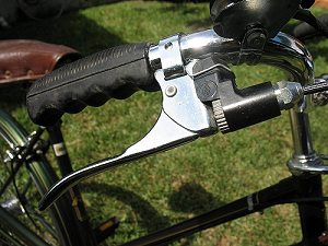 Raleigh's "Self-Adjusting" brake lever attachments are featured for the first time on the Sports for 1973. Raleigh's standard bolt-on levers w/o self ajusters are replaced with a nearly identical, hooded design most commonly used on the Raleigh Chopper SE.